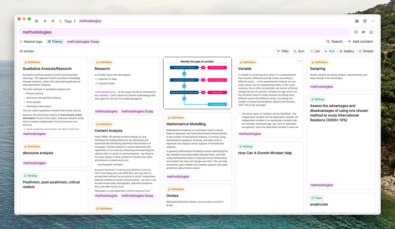 This allows to link as needed between content but to also display that link as needed. This gives you more control over your notes and knowledge and how you interact with it. I personally use small cards and wide cards to create fun but useful layouts for my notes.