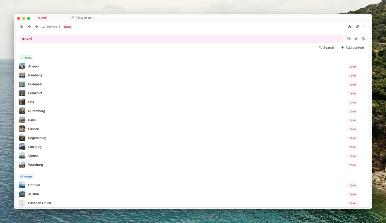 The issue with forcing content to live in one place, be it an object or a folder, means it’s hard to know what to do with content that could be classified in more than one way. Capacities gives you the best of both worlds here by allowing a tag to be added to any object, thus uniting content from across your workspace under that tag heading.
