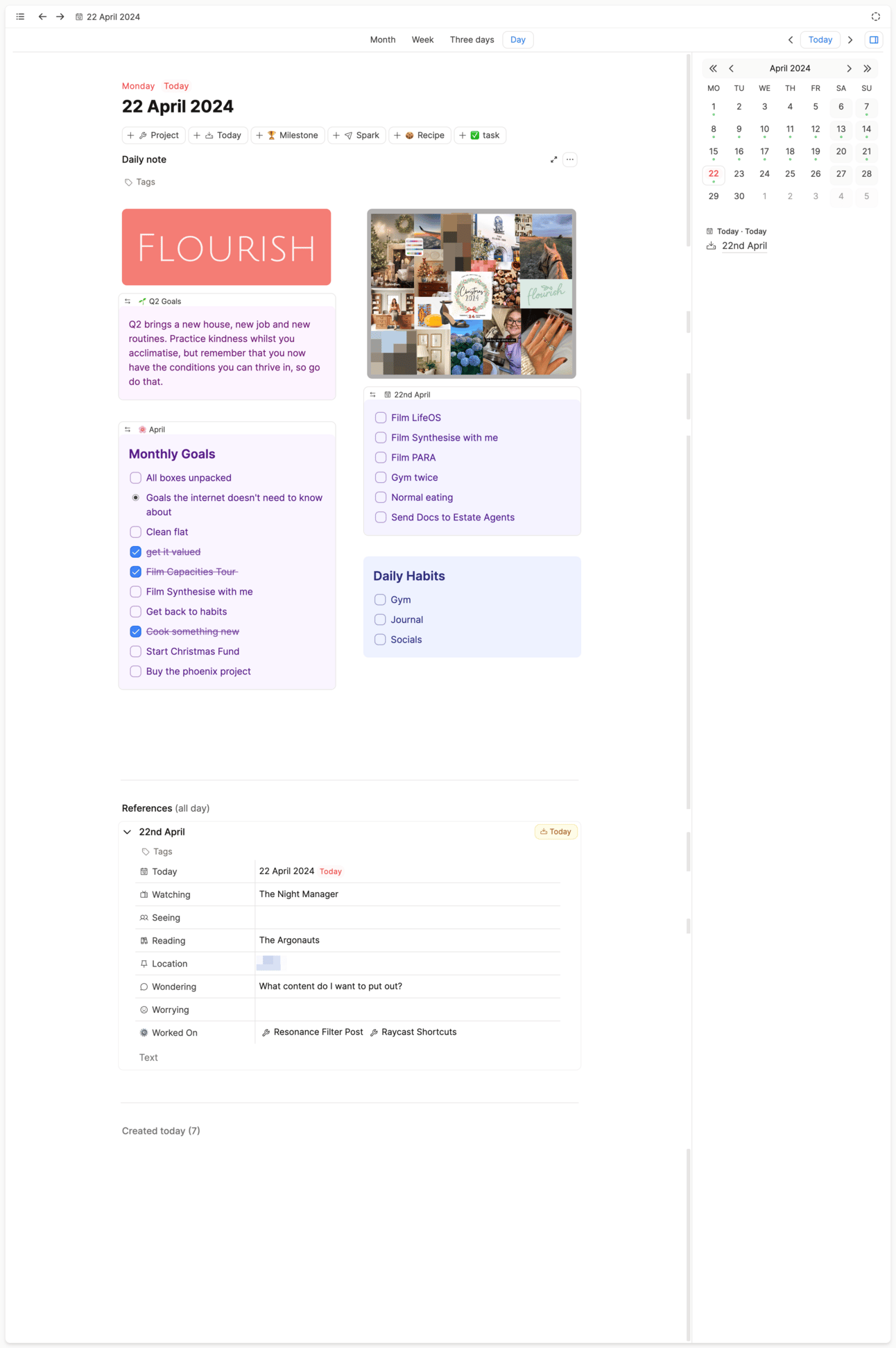 Capacities is officially becoming my LifeOS. I will make specific content on this in the coming weeks, but I thought I’d show you what my daily note looks like in its early stages.