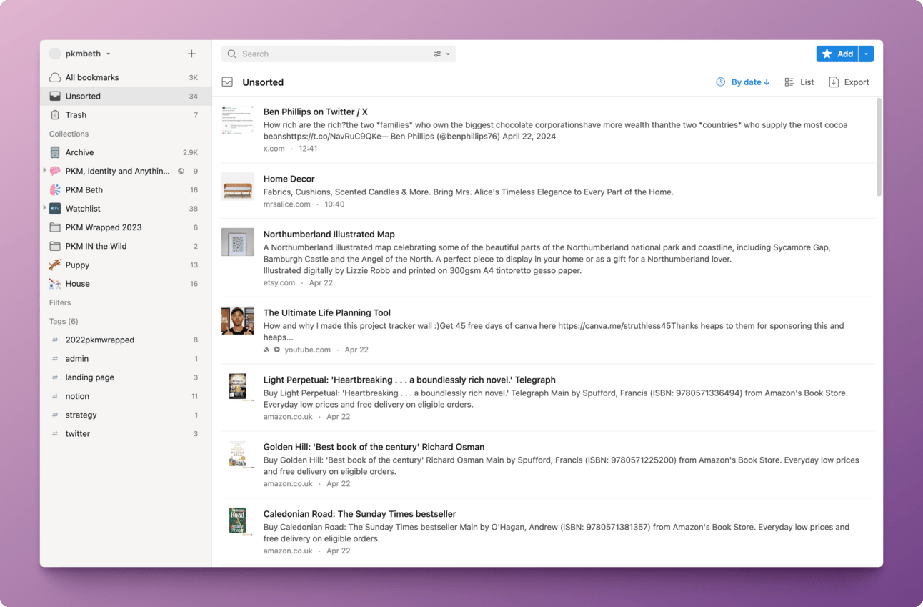These attributes make it perfect for the first step in this process: capture any link that resonates to Raindrop’s unsorted folder.